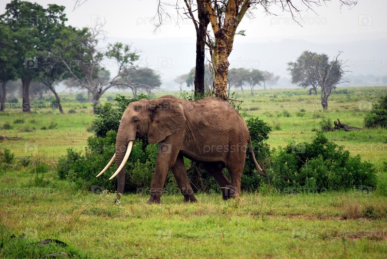 Слон в саванне Танзании