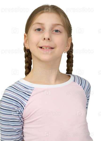 Гордая девочка-подросток на белом фоне