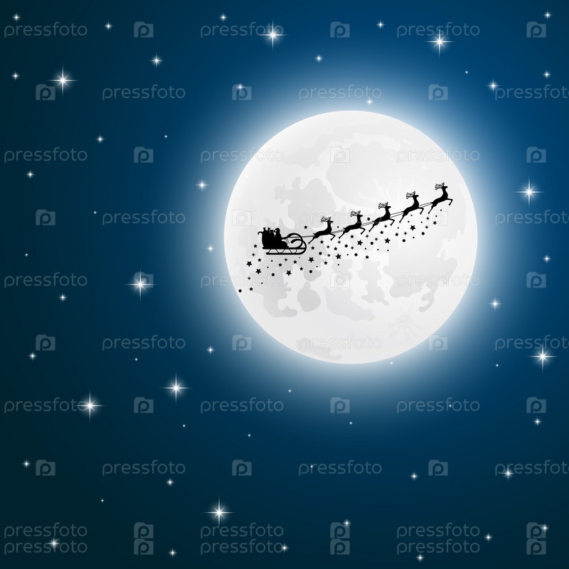 Санта-Клаус на санях в небе