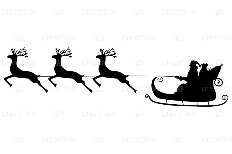 Санта-Клаус в санях в упряжке