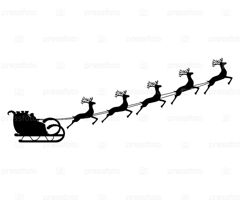 Санта-Клаус в санях в упряжке