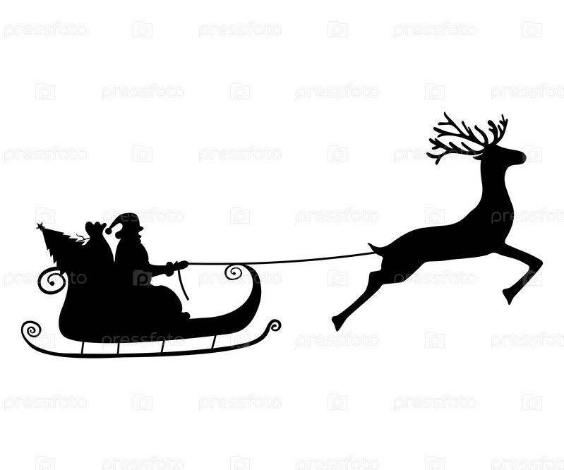 Санта-Клаус в санях в упряжке
