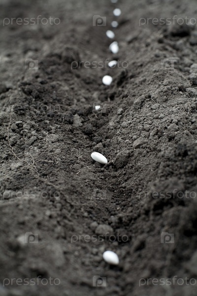 Белые семена в земле