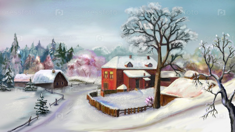 Сельский пейзаж в зимний день