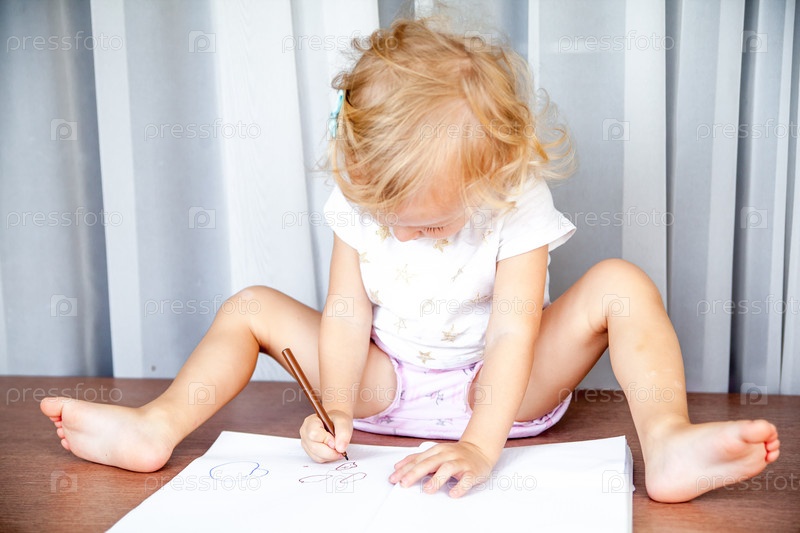 Очаровательная маленькая девочка рисует