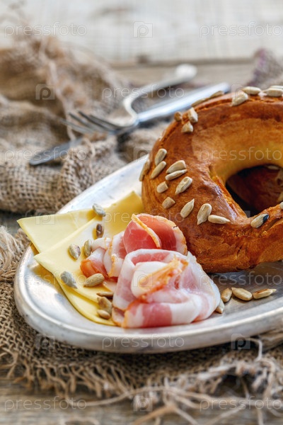 Бублик с семечками, беконом и сыром