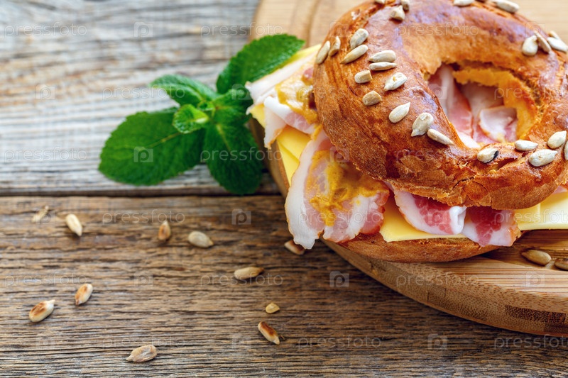 Бублик с беконом, сыром и горчицей