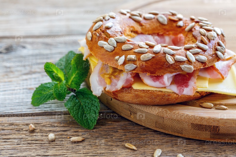 Бублик с беконом, сыром и горчицей