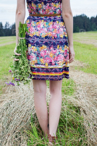 Девушка с букетом полевых цветов