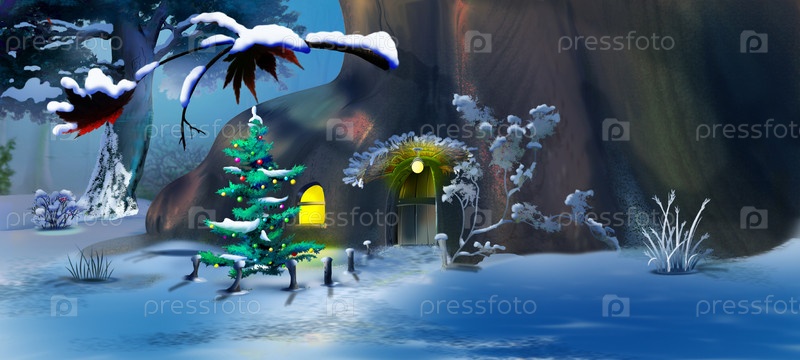 Рождественская елка возле сказочного дома