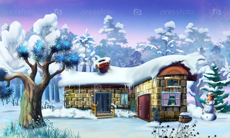 Старый дом в зимнем лесу