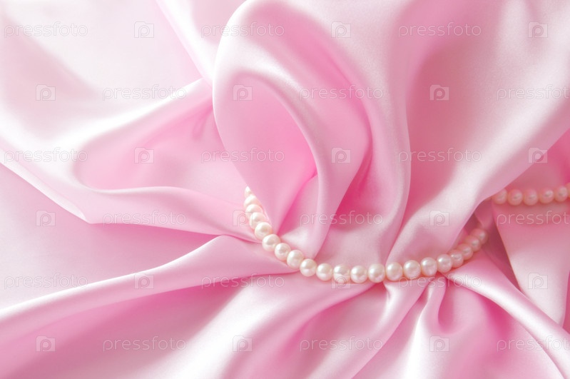 Розовый шелковый фон с жемчугом