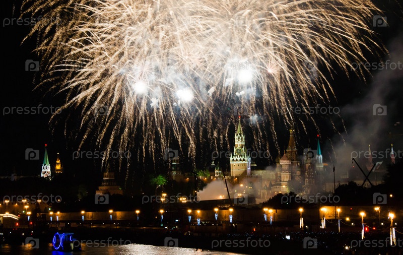 Фейерверки в небе над Московским Кремлем