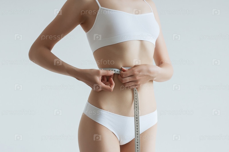 Молодая красивая девушка измеряет тело