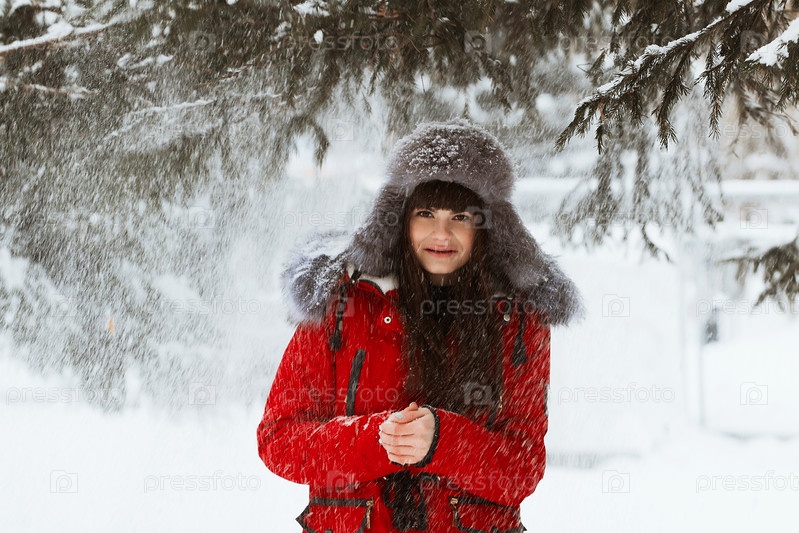 Красивая молодая девушка в зимнем лесу