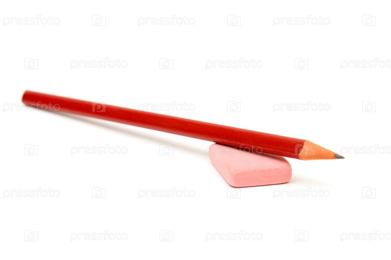 Карандаши и ластик на белом фоне