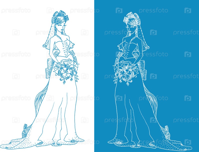 Богато украшенный силуэт невесты с бантом на двух разных фонах