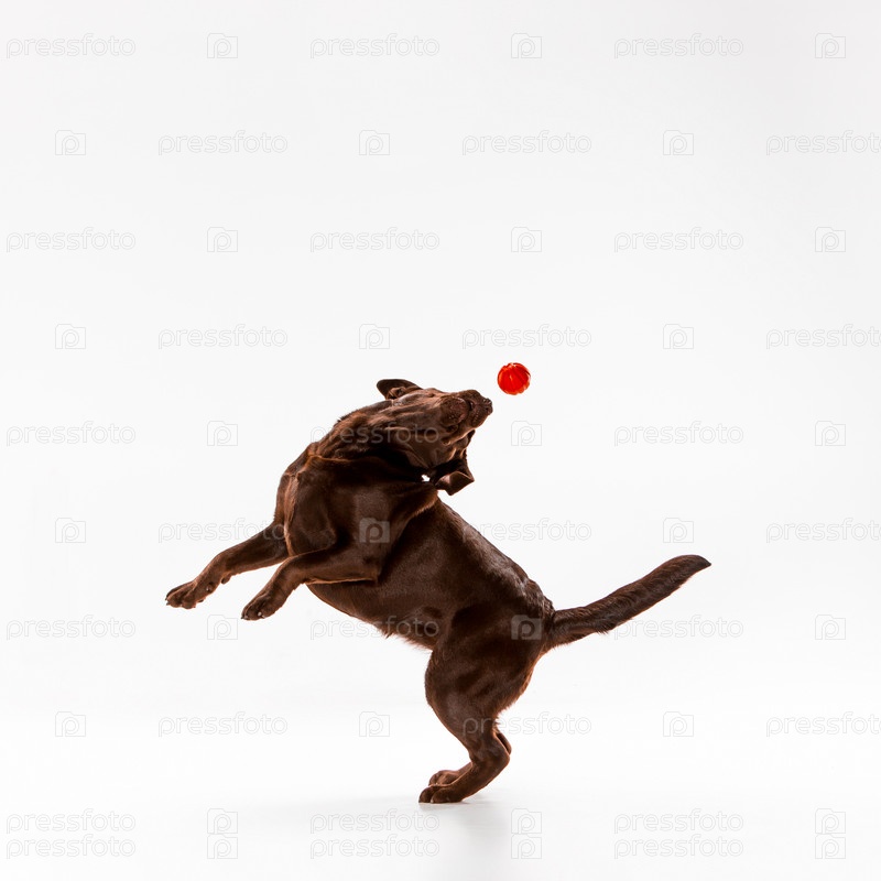 Коричневый лабрадор с мячиком