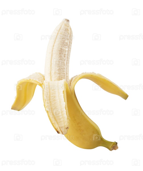 Очищенный банан, изолированный на белом фоне