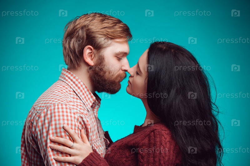 Молодой мужчина и женщина целуются