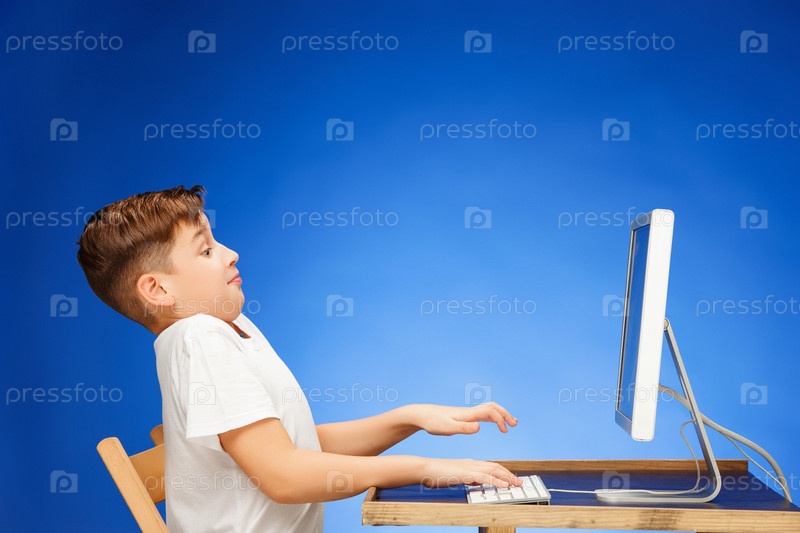 Мальчик перед монитором компьютера