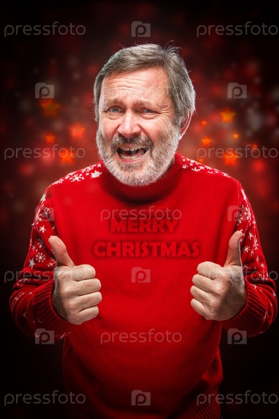 Пожилой человек на красном фоне