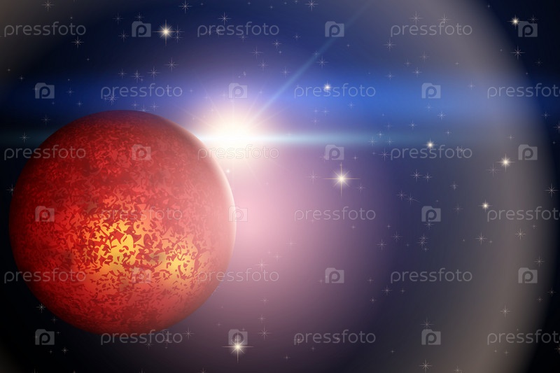 Планета Марс и яркая звезда