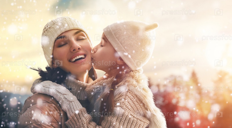 Мать и дочь радуются зиме