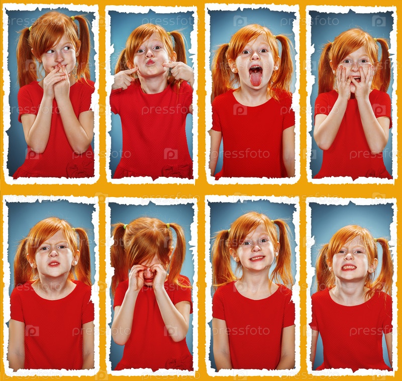 Рыжая девочка с различными эмоциями