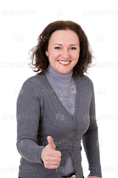 Женщина показывает знак отлично на белом фоне