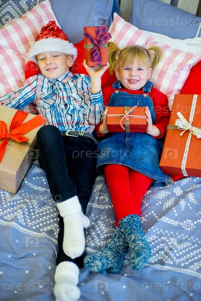 Дети с рождественскими подарками