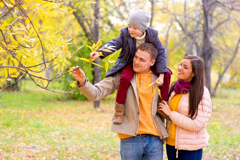 Счастливая семья в осеннем парке