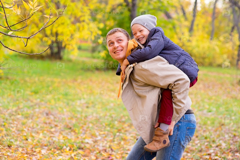 Отец и сын в осеннем парке