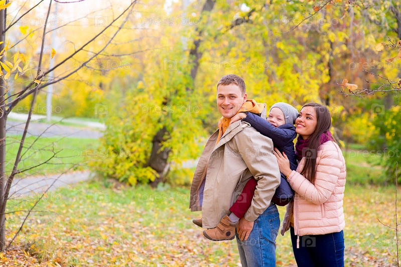 Счастливая семья в осеннем парке
