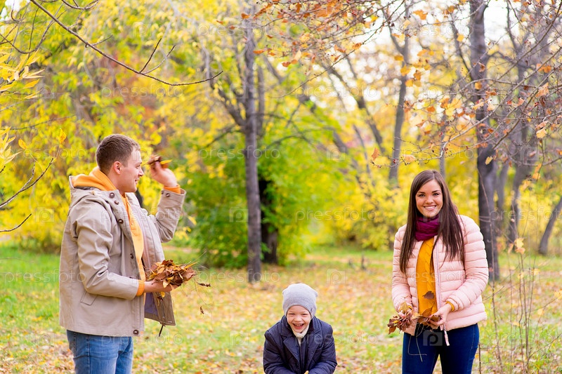 Счастливая семья в осеннем парке