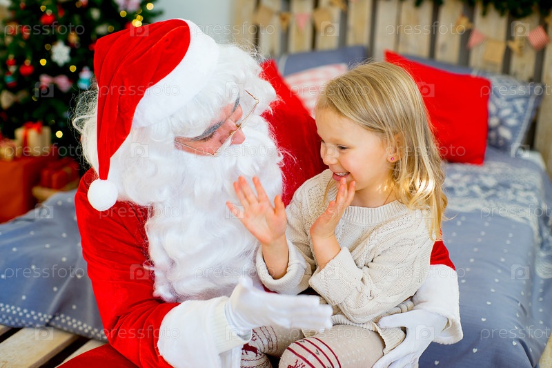 Санта Клаус и милая девочка