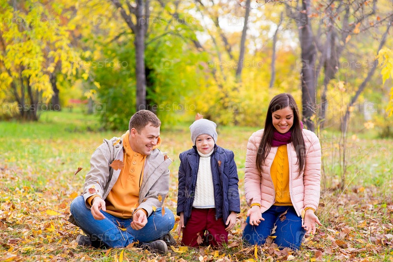 Счастливая семья в осеннем парке