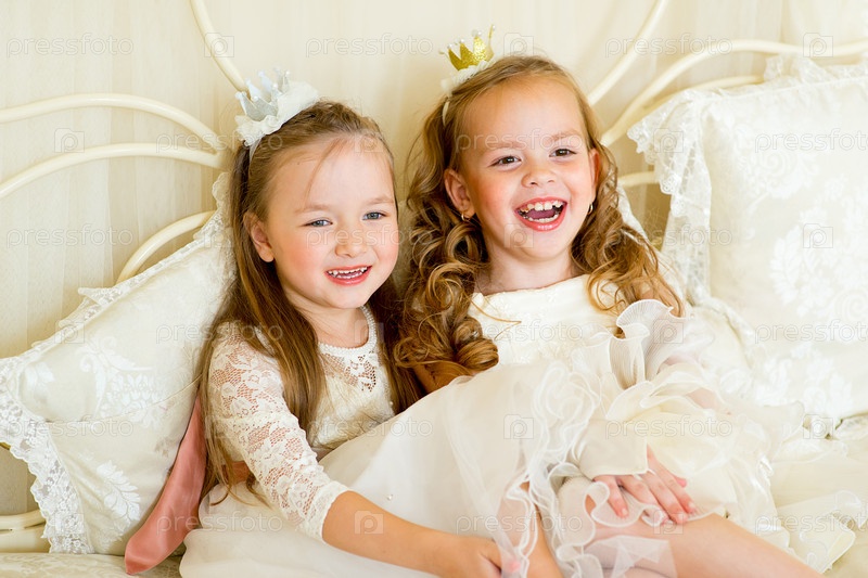 Две маленькие принцессы на кровати