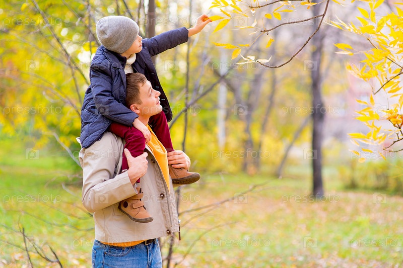 Отец с сыном в осеннем парке
