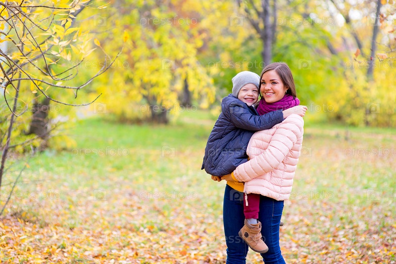 Мать с сыном в осеннем парке