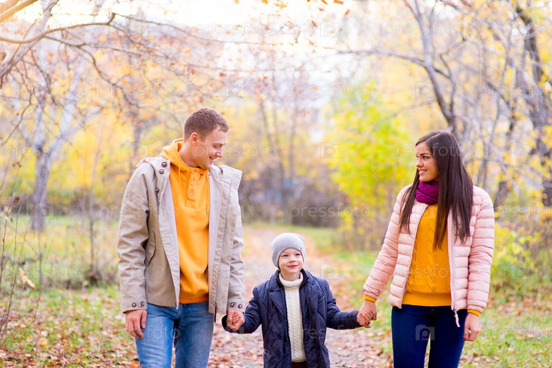 Счастливая семья в осеннем парке