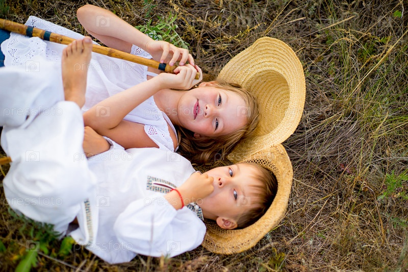 Брат с сестрой на траве