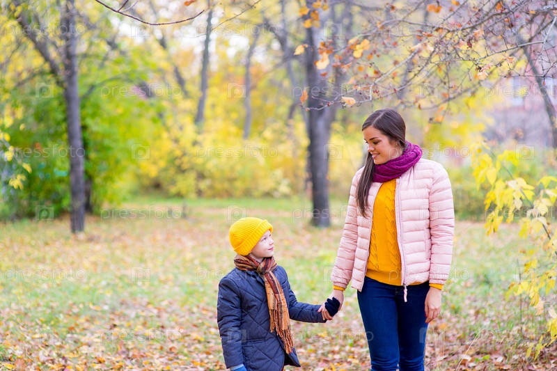 Мать и сын в осеннем парке