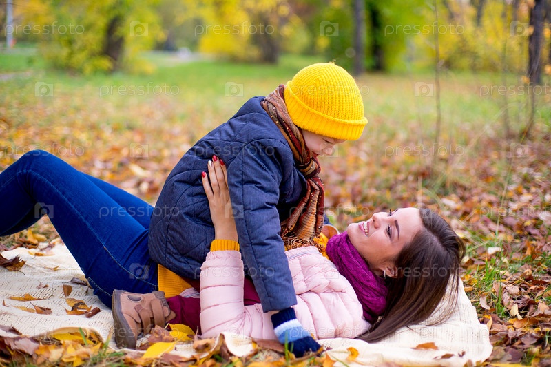 Мать и сын в осеннем парке