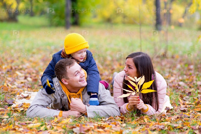 Счастливая семья в осеннем парке