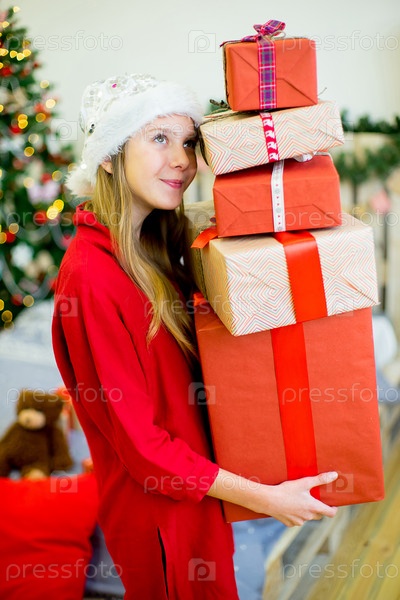 Девочка с рождественскими подарками