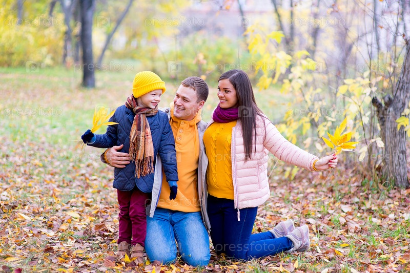 Счастливая семья в осеннем парке