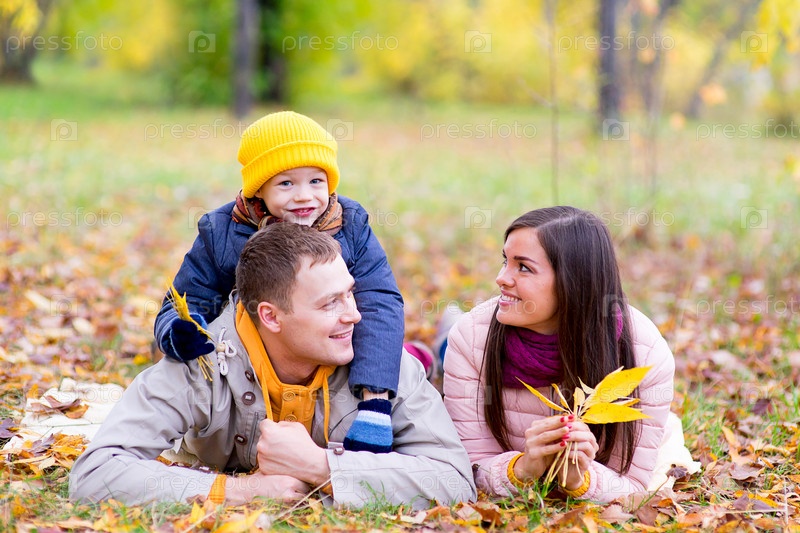 Счастливая семья в осеннем парке