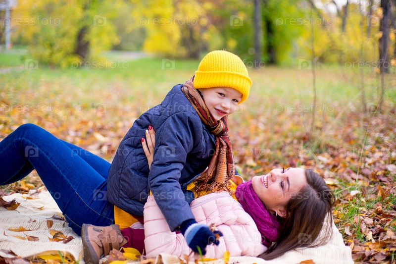 Мать с сыном в осеннем парке