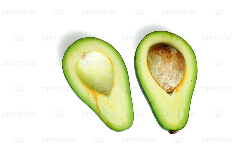 Разрезанный авокадо на белом фоне